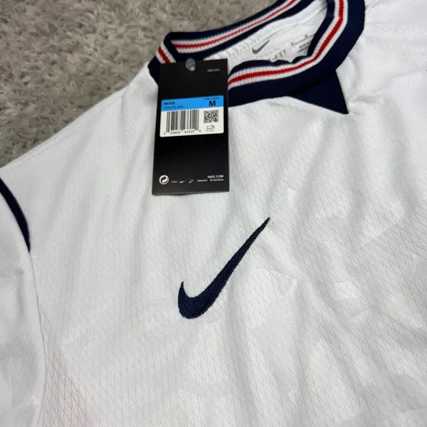 Sinta o orgulho inglês com a nova camisa titular da Seleção da Inglaterra. Este modelo combina o tradicional branco impecável com detalhes em azul marinho e detalhes tricolores, trazendo uma elegância atemporal para os gramados e para o dia a dia. É a peça perfeita para o torcedor que busca um visual "clean" e sofisticado.
